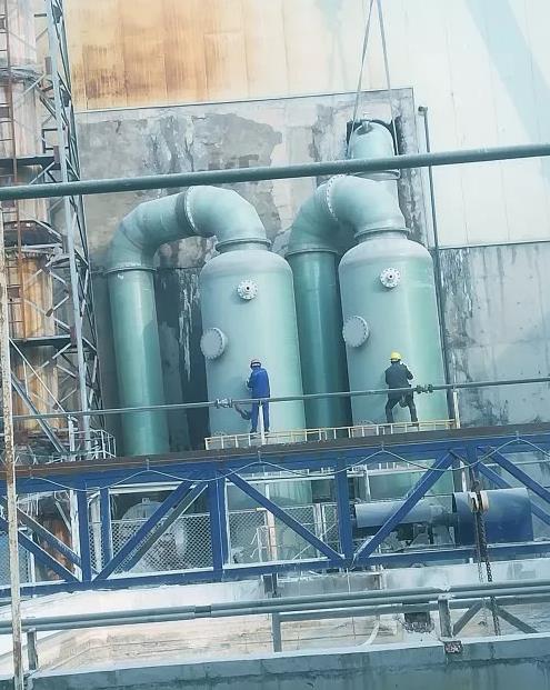 硫酸鎂生產(chǎn)工廠中產(chǎn)生含硫廢氣,為防止其污染大氣需對(duì)其進(jìn)行脫硫、除塵處理,但原有系統(tǒng)設(shè)備為PE材質(zhì)制造,由于北方氣候原因,此材料損毀過快,故障頻發(fā),為保證正常生產(chǎn),已對(duì)現(xiàn)有尾氣除塵凈化系統(tǒng)進(jìn)行升級(jí)改造,將原有設(shè)備更換為玻璃鋼材質(zhì)。